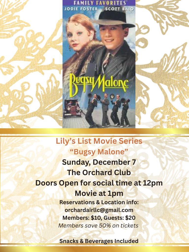Lily’s List is the name of our movie series sponsored by my aunt, Susan, whose name means Lily.